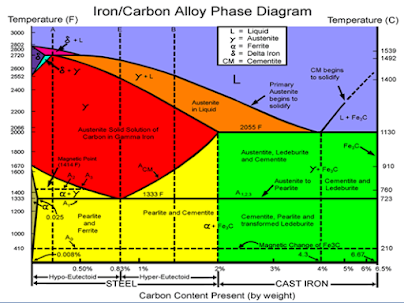 fase Fe-Fe3C dibuat mengacu kadar karbon dalam Fe ( 0%-6.67% ) dan suhu (